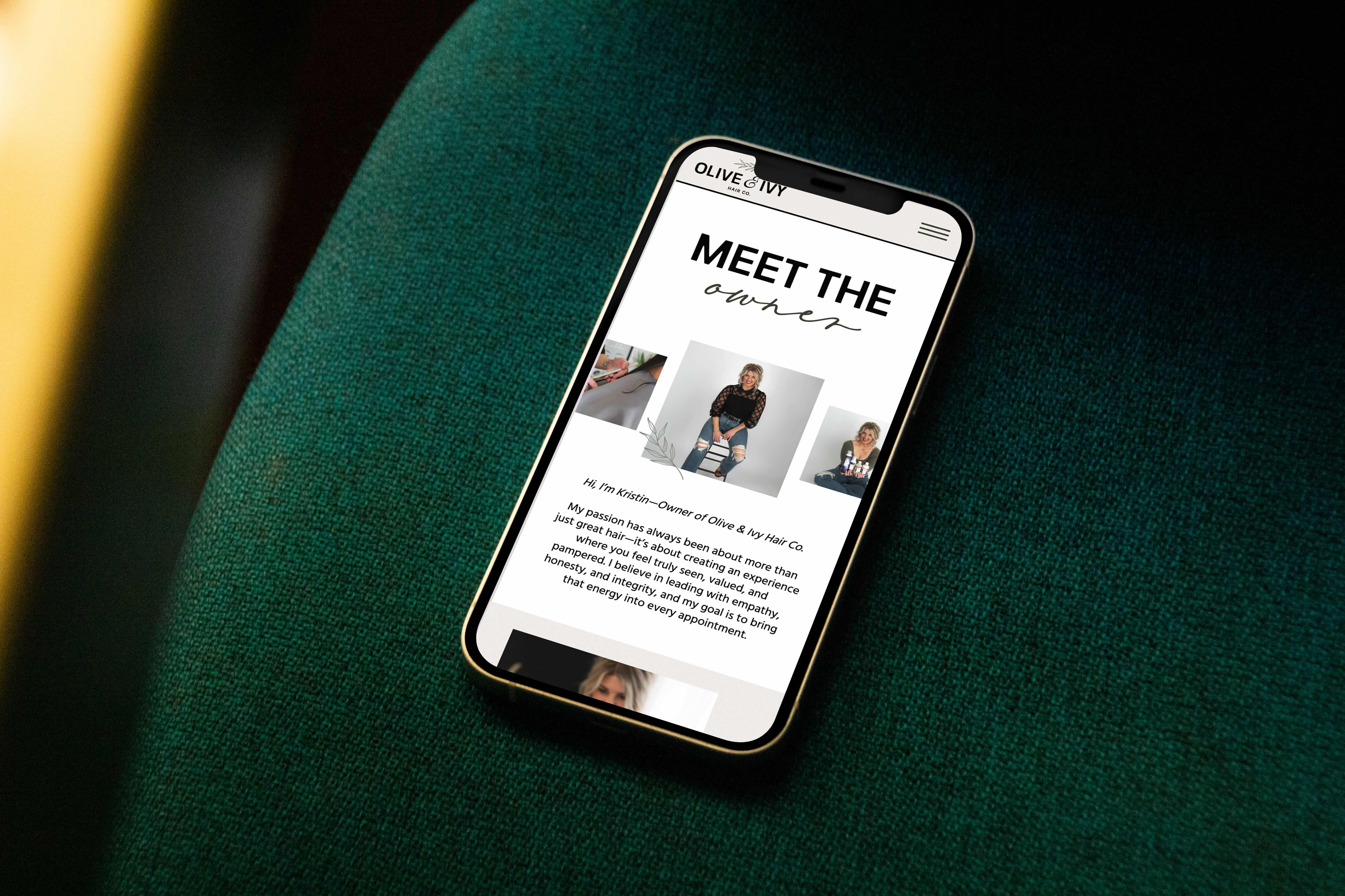 Olive + Ivy Hair Co. needed a brand and website that felt as thoughtful and elevated as the experience they offer in the salon. As a hair studio focused on lived-in color, extensions, and a more personalized client experience, the brand needed to communicate professionalism while still feeling welcoming, modern, and true to the atmosphere they wanted to create.